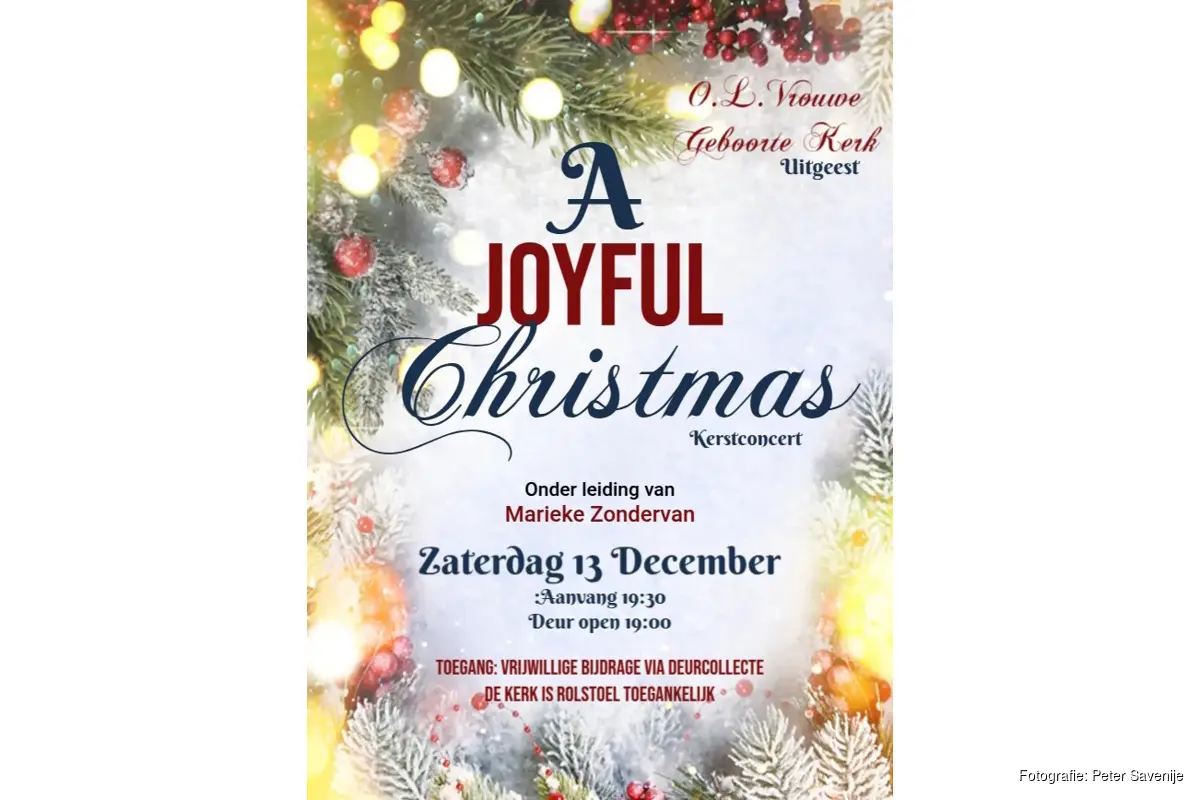 Beleef de magie van kerst tijdens A Joyful Christmas; een sfeervol kerstconcert vol warmte, muziek en samenzang! Kom genieten van vrolijke uptempo liederen en bekende Kerst songs zoals Oh holy night en de A joyful Christmas medley. Dirigente Marieke Zondervan organiseert met haar werkgroep al vele jaren kerstoptredens en weet het publiek telkens weer ter verrassen. Dit jaar is het aan de verteller Irma Straver om het kerstverhaal met een hedendaagse twist te brengen. Het verhaal gaat over geloof, hoop en liefde en de liederen die door het gepassioneerd projectkoor gezongen worden sluiten hierop aan. Schitterende zang, met muzikale begeleiding van Jaap Brackman op piano en Bastiaan Vergouw op cajon.